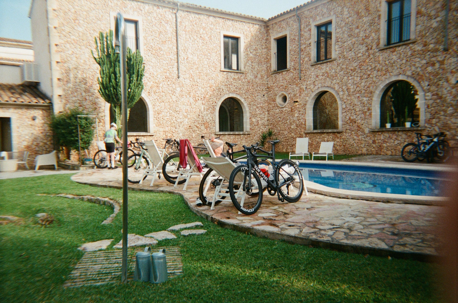 Das Hotel verfolgt ein veganes Konzept und die meisten Lebensmittel sind aus mallorquinischem Anbau. Wir sind seit der Klassenfahrt 3.0 riesen Fans des mit viel Passion und Hingabe geführten Hotels. Hier frühstücken wir jeden Tag gemeinsam und essen auch meistens zu Abend. An zwei Tagen machen wir zusammen Maria unsicher und checken die Lokale der Kleinstadt aus. Außerdem findet Ihr im Curolla unser KlappHouse, dort parken wir unsere Räder, können die ein oder andere Schraube nachziehen, einfach nur auf der Couch abhängen, Tischtennis spielen oder gemeinsam Yoga machen.